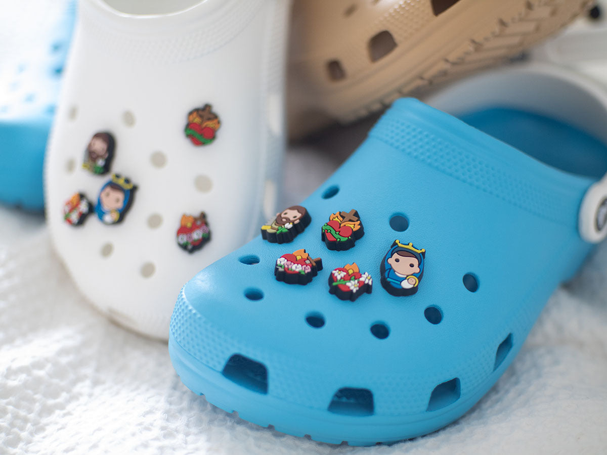 Wear your favorite saints anywhere you go with Saintlets – Tiny Saints that are compatible with hole-y shoes.
