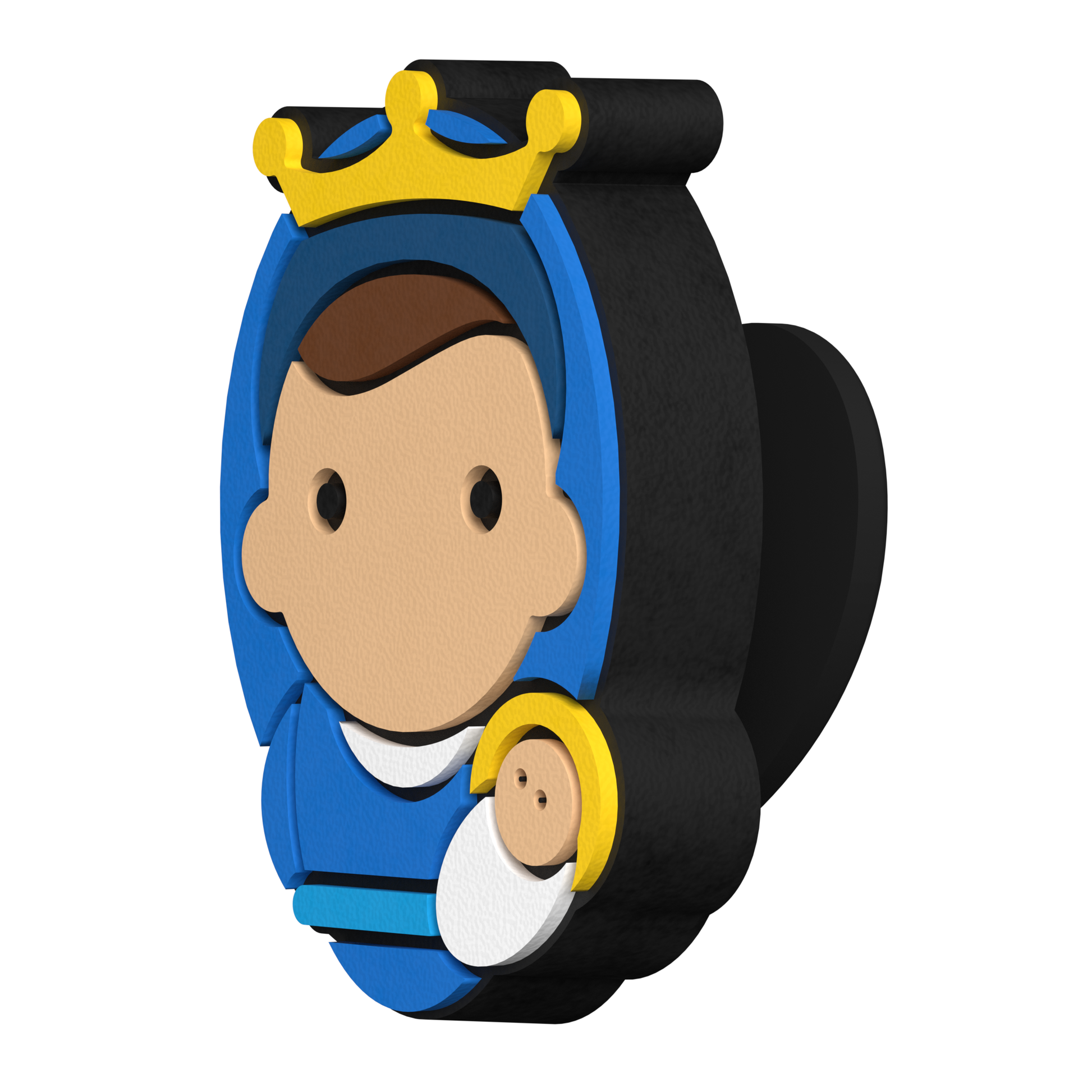 Carry Mary anywhere-y. These modified Tiny Saints feature a fastener on the back that snaps into your favorite pair of clog-style shoes or our Saintlet Bracelets.