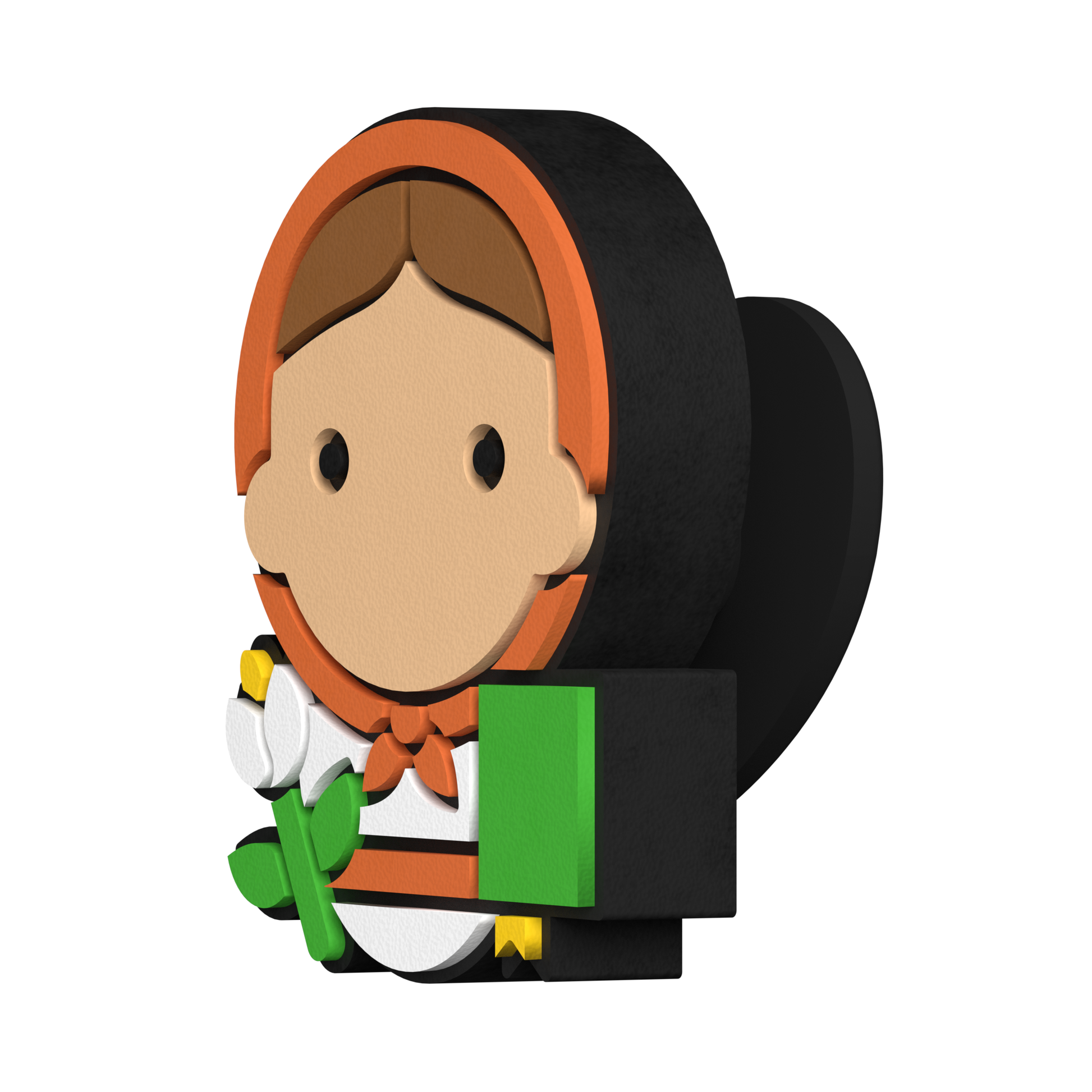 Keep a constant reminder of the peace and kindness of God in the midst of any suffering with our Saint Dymphna Saintlet. These modified Tiny Saints feature a fastener on the back that snaps into your favorite pair of clog-style shoes or our Saintlet bracelets.